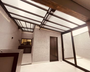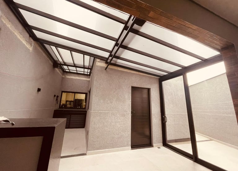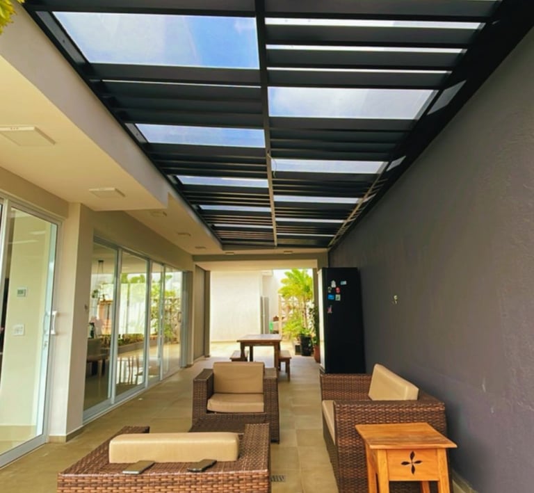 Cobertura retrátil em policarbonato compacto